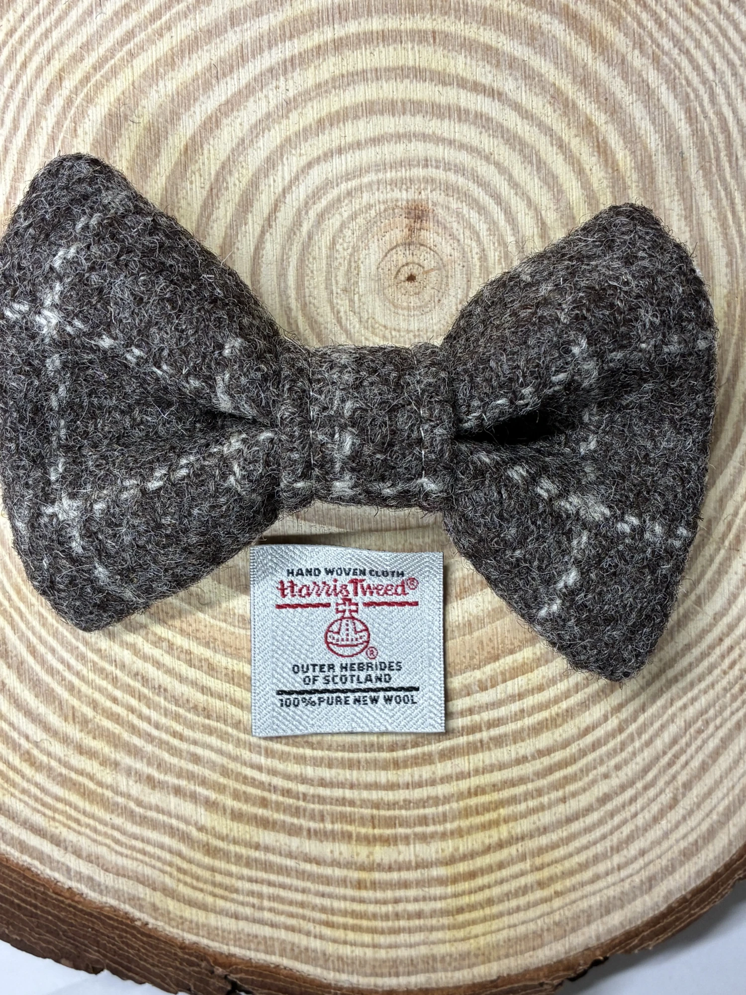 Brown Check Harris Tweed Dog Bow Tie made from traditional Harris Tweed