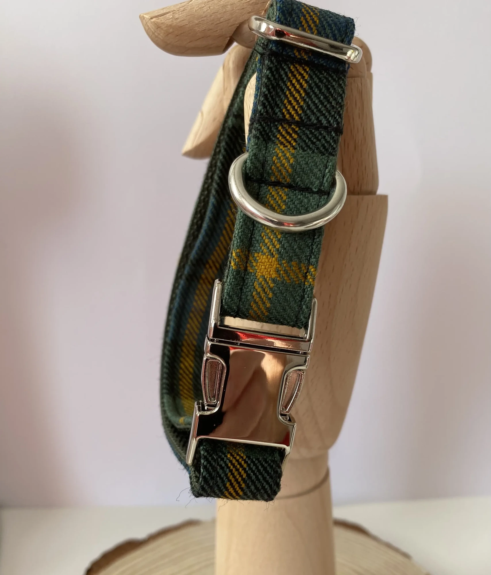 Medium Size Green and Gold Tartan dog collar size other sizes available