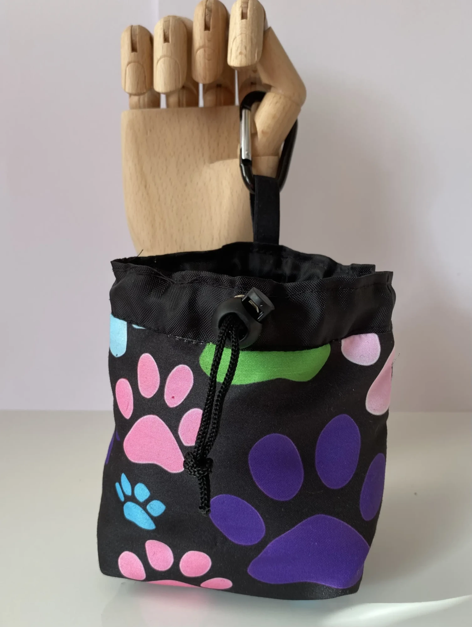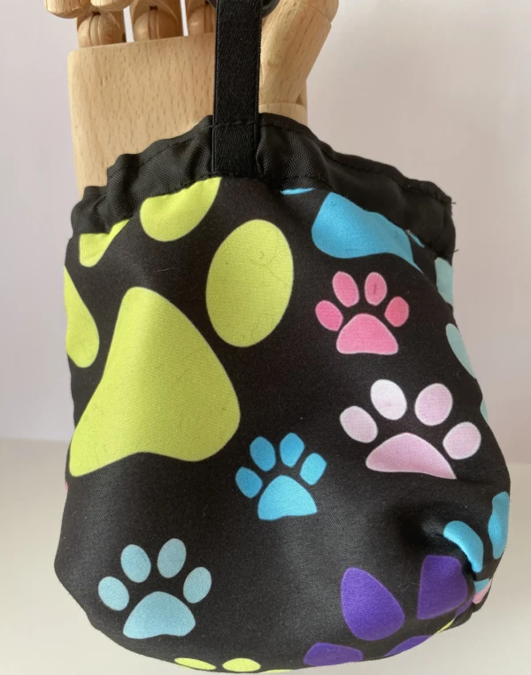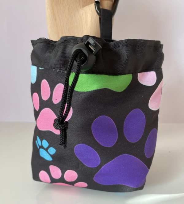 - Quality Materials: Made from durable cotton fabric featuring an adorable Large Paw Print Dog Print Dog Treat Bag , complemented by a waterproof lining that protects treats from moisture and spills.