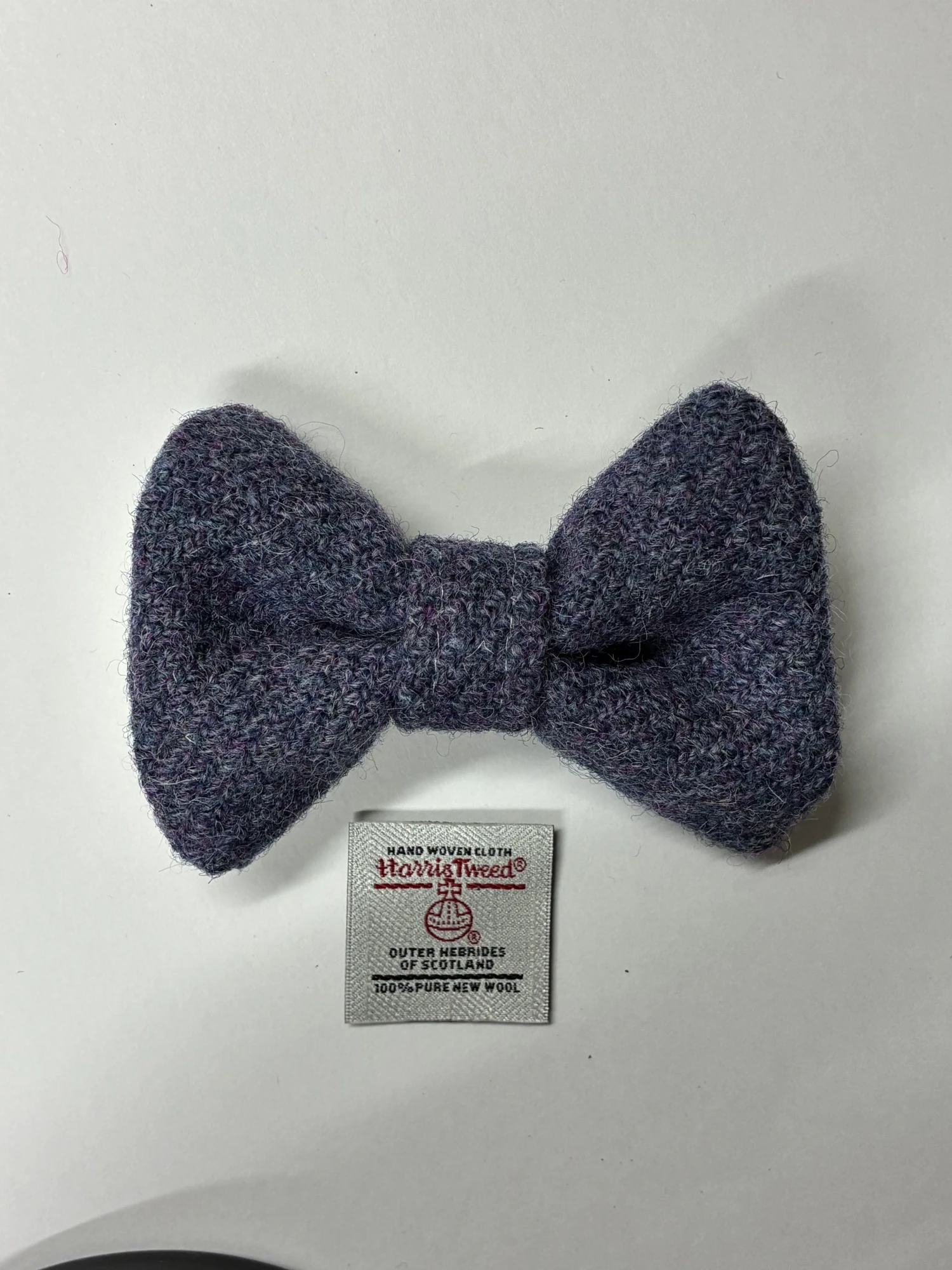Purple Dog bow tie made from traditional Harris Tweed